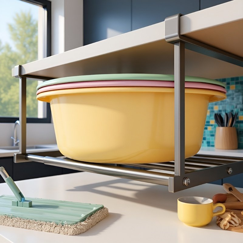 浴室懸浮掛式收納置物架 臉盆收納架可伸縮免打孔收納置物架放盆架子洗臉盆收納架
